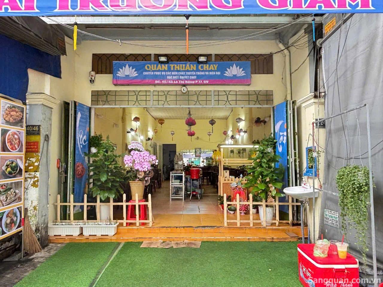Cần sang nhượng Quán Buffet chay Lê Thị Hồng p17 Gò Vấp. Lượng khách ổn định. Vị trí đẹp, sầm uất .Khu ăn uống đông đúc ngay chợ căn cứ 26. Diện tích Nhà 5 x 20m. Chủ nhà ký hợp đồng mới. Giá sang toàn bộ cơ sở vật chất quán và lượng khách sẵn vào chỉ việc tiếp quản . Giá sang 200 triệu thương lượng Liên hệ chị Hạnh 0914391899 Tin liên quan