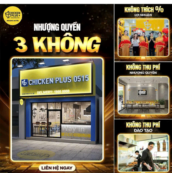 Sang Tất Cả Quán Và Nhượng Quyền Thương Hiệu Gà Rán Chicken Plus Khu Vực Quận Bình Thanh - TP . HCM Chính chủ Cần sang quán gà rán Chicken Plus , quán đang hoạt động bình thường ,giao thông thuận lợi, khu vực sầm uất- thông qua các quận Địa chỉ: 57 Nguyễn Văn Đậu-Quận Bình Thạnh . TP . HCM Giá sang tất cả: 400 triệu - thương lượng( trong đó bao gồm 50 triệu tiền nhượng thương hiệu gà Chicken - Plus)