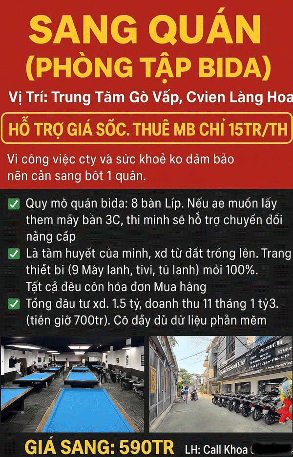 - Quy mô quán bida : 8 bàn Líp. Nếu ae muốn lấy thêm mấy bàn 3C, thì mình sẽ hỗ trợ chuyển đổi nâng cấp.