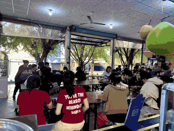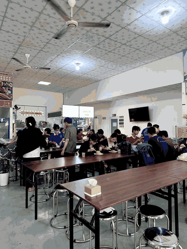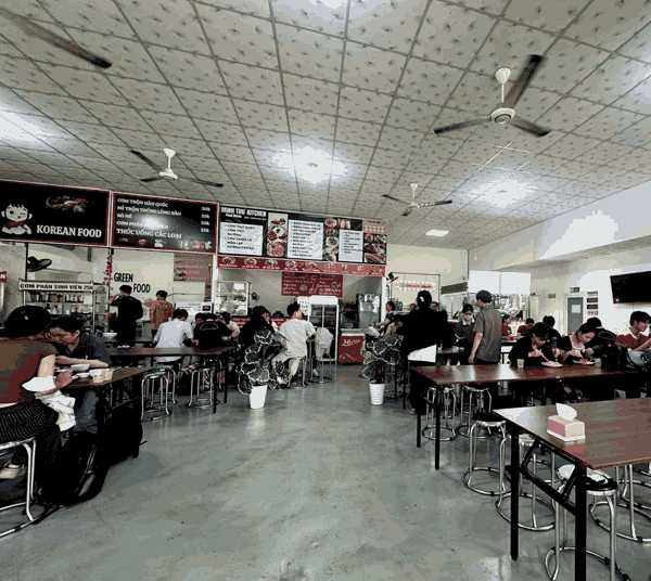 Quán đối diện Khu E cổng cầu thang lên xuống của sinh viên . Đặc biệt quán hiện tại chỉ bán nước cà phê.