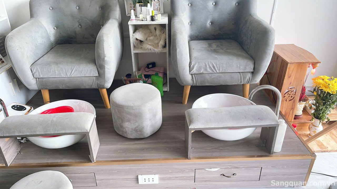 2 ghế cắt tóc nữ 1 ghế ráy tai, 2 ghế nail, 1 máy uốn nóng seting chưa qua sử dụng.