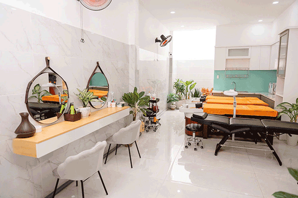 Bao gồm hết tất cả nội thất, dụng cụ, set sơn, bàn ghế, sofa, giường gội, máy móc thiết bị, bảng hiệu cửa kính thuỷ lực v.v