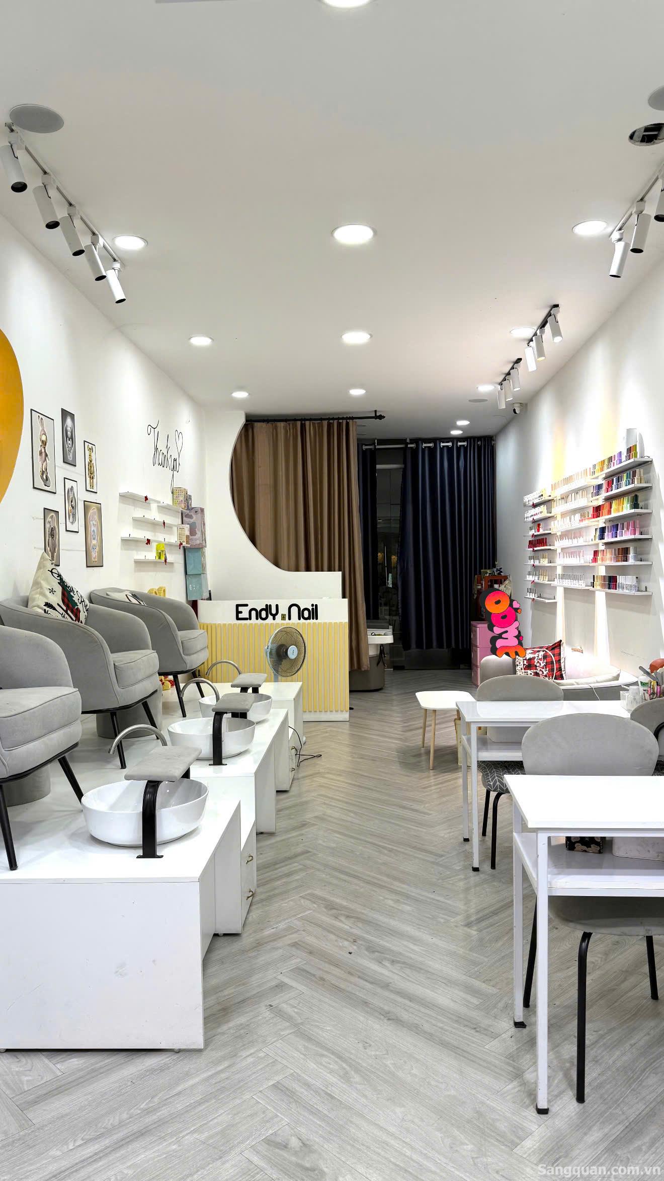 Dạ hiện tại em cần sang tiệm nails, tiệm ngang 3,8m x dài 10m ( chỉ mặt bằng phía trước ) , nguyên căn kéo vô là 3,8 x 18m , đồ đã có sẵn và được decor đơn giản vô là làm được luôn ạ . - Tiệm mặt bằng đường Trương Vĩnh Ký - Diện tích tổng 3,8m x 18m ( nhà 2 tầng ) - Nhà 2 tầng, tổng có 5 phòng ( hiện đang cho thuê được 3 phòng ) - Lượng khách ổn định ( đã làm được 2 năm ) - Sang toàn bộ thiết bị , vật tư của tiệm