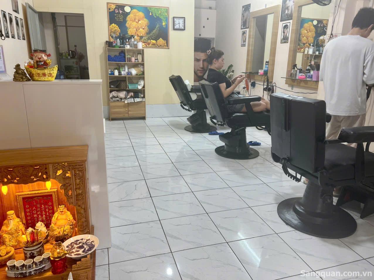 Tiệm hiện có 4 ghế cắt ,3 đèn ráy ,3 giường gội 2in1 ,4 máy quạt ,2 máy lạnh 1,5 ngựa ,1 camera ,1 quầy ,1 quầy tính tiền ,2 bình chữa cháy ,1 phòng kín làm vai gáy body ,1 đèn led ,1 hộp đèn ,1 bảng hiệu ,1 tủ lạnh , 1 dàn cửa kính .